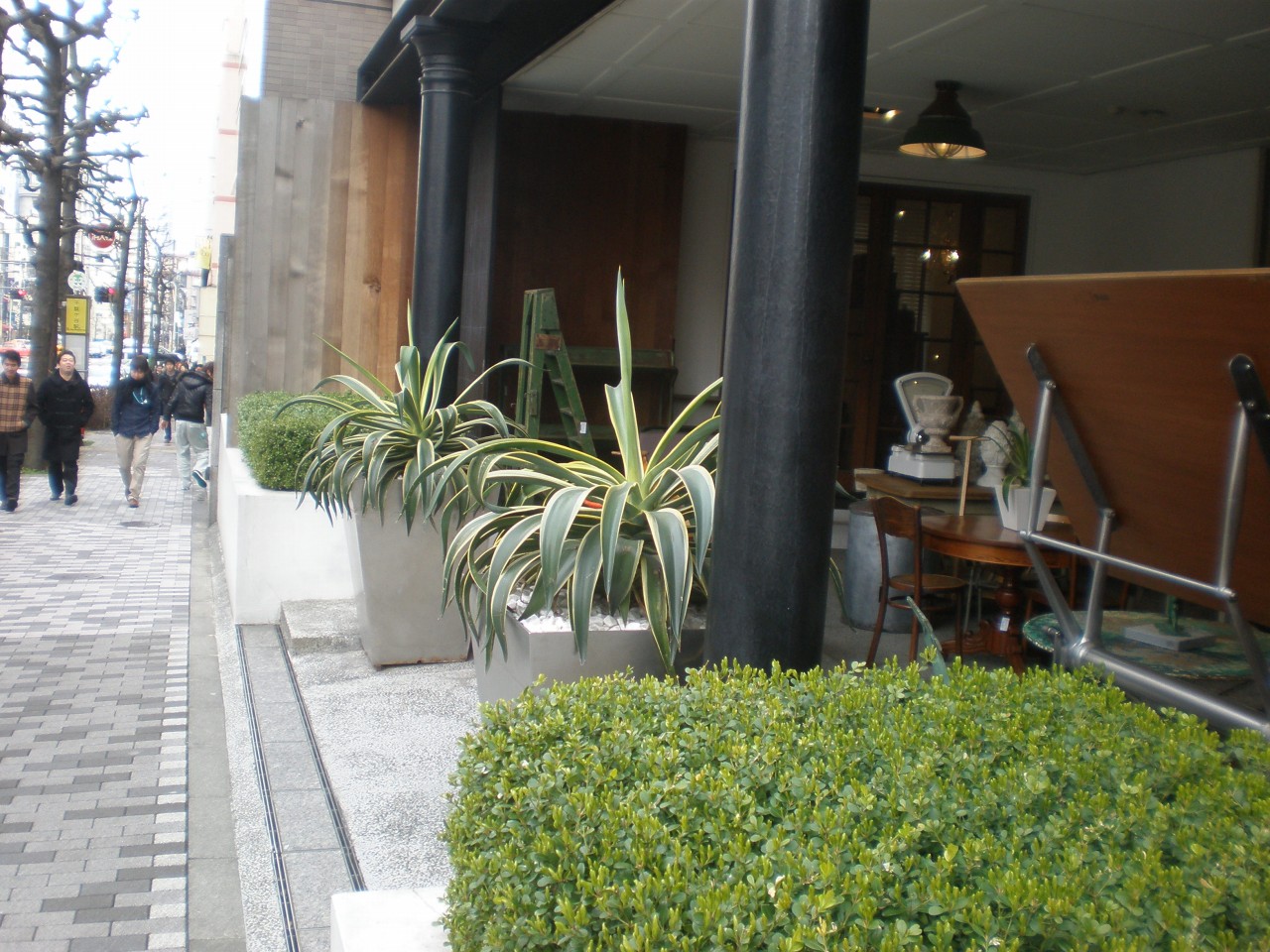 数年前ですが(2011年?!だったかな)京都府立植物園を訪れた時に観覧エリア外というかバックヤードっぽい所の脇にやたら大きいリュウゼツランが3・4株あるのを見つけ、